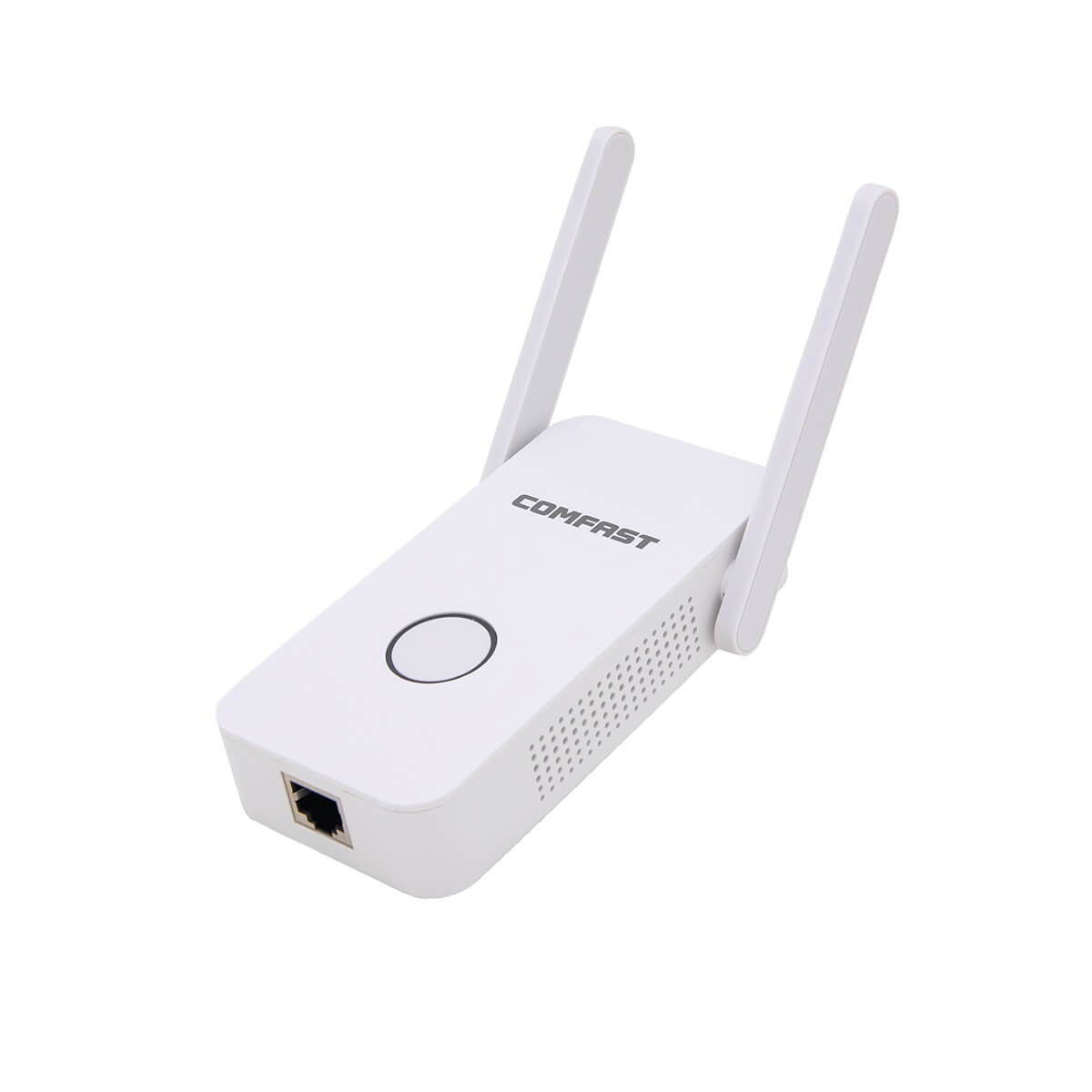 Wi-Fi усилитель сигнала Comfast CF-WR752AC 2 антенны 2.4GHz+5.8GHz - устройство, увеличивающее мощность сигнала от роутера. Работает в двух частотных диапазонах 2.4GHz и 5.8GHz, обеспечивает стабильную передачу данных на скорости до 300 мбит/с. Прибор быстро синхронизируется с роутером и приемниками сигнала. Управление осуществляется с помощью кнопки на корпусе. Усилитель может работать в трех режимах - AP, репитер и роутер.